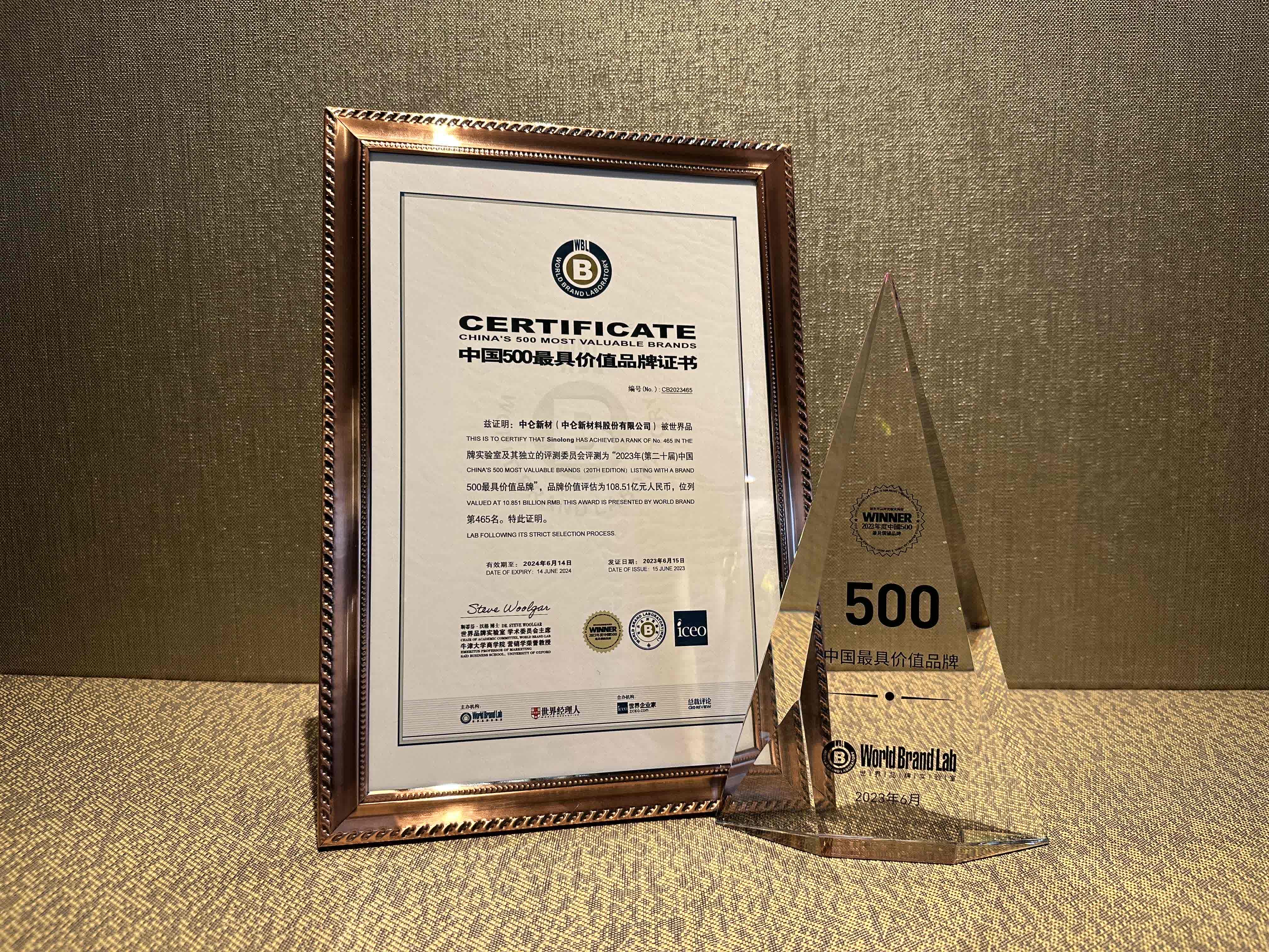 日前,世界品牌實(shí)驗(yàn)室在北京發(fā)布了2023年《中國500最具價(jià)值品牌》分析報(bào)告。在這份基于財(cái)務(wù)數(shù)據(jù)、品牌強(qiáng)度和消費(fèi)者行為分析的年度報(bào)告中,中侖新材品牌價(jià)值達(dá)到108.51億元,再度蟬聯(lián)中國最具價(jià)值高性能膜材料品牌。